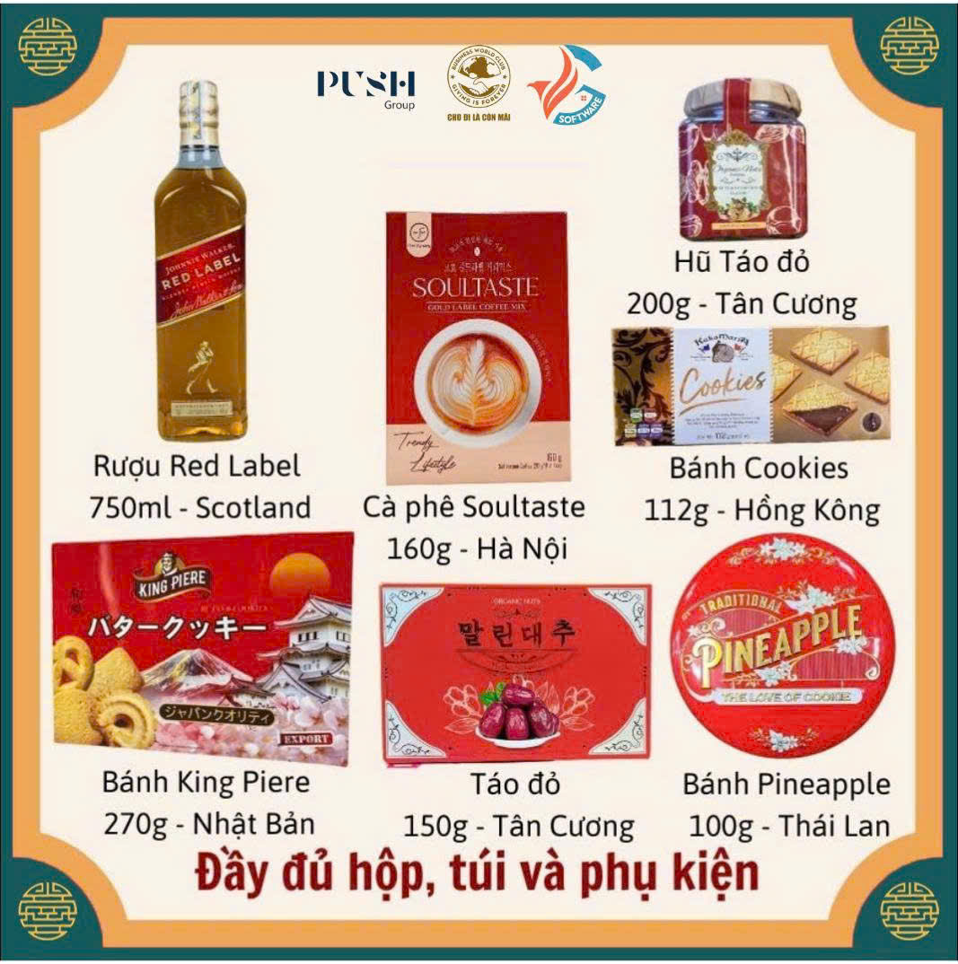 Rượu Red Label, Cà phê Soultaste, Hũ Táo đỏ, Bánh Cookies, Bánh Pineapple, Táo đỏ, Bánh King Piere